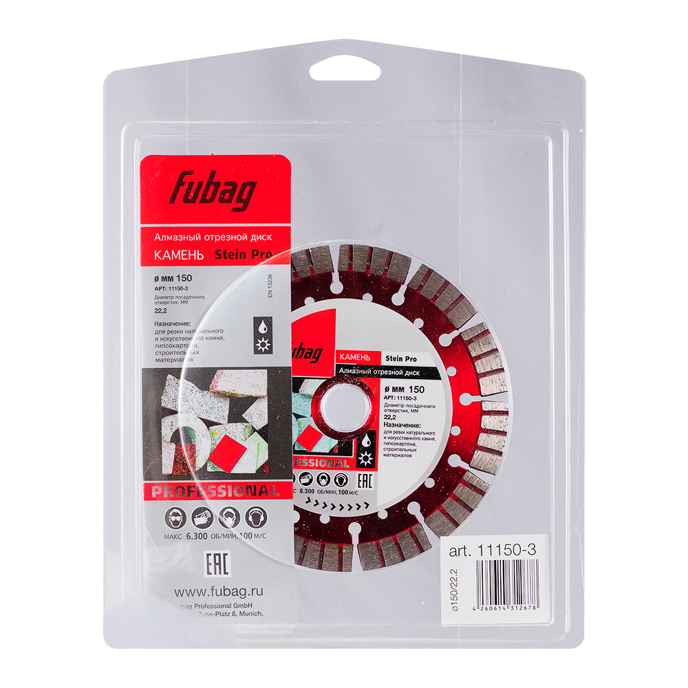 Характеристики Алмазный отрезной диск FUBAG Камень Про (Stein Pro) D150 мм / 22,2 мм по камню